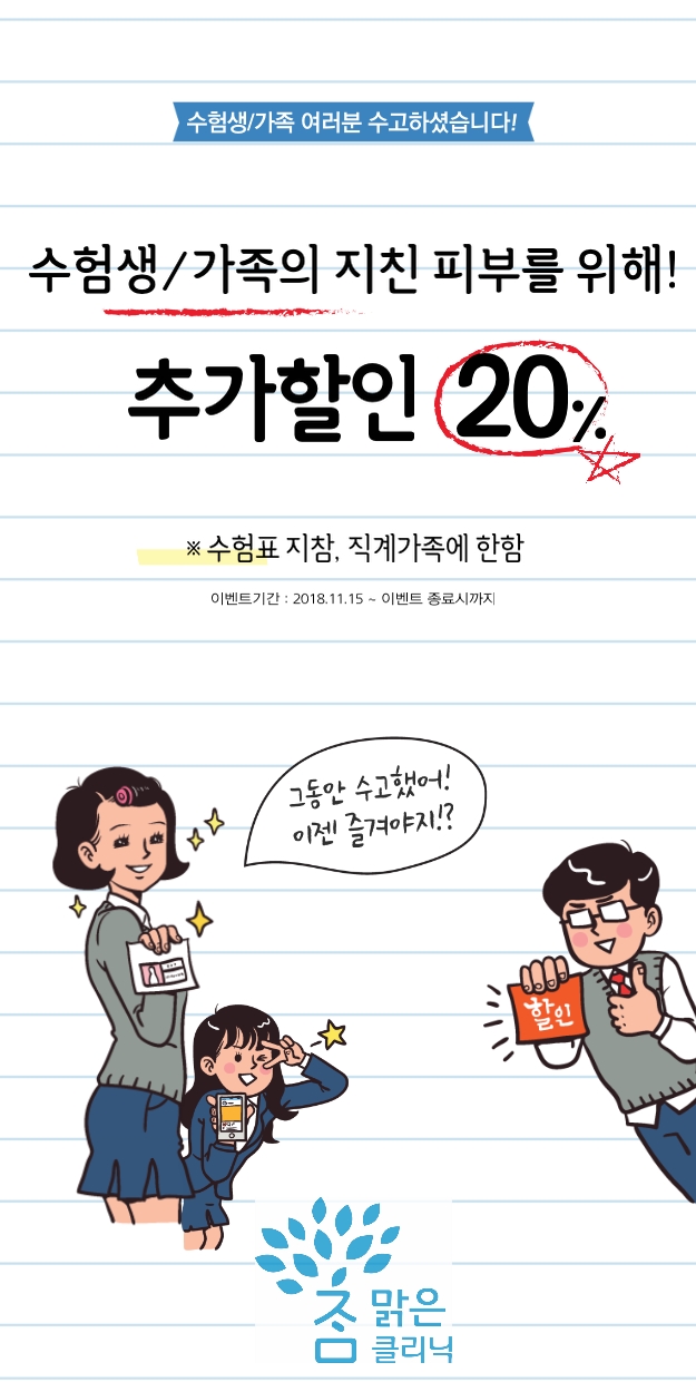수능수험생과 가족의 지친 피부를 위해!(※수험표 지참,직계가족에 한함)
